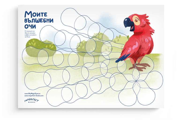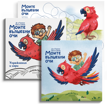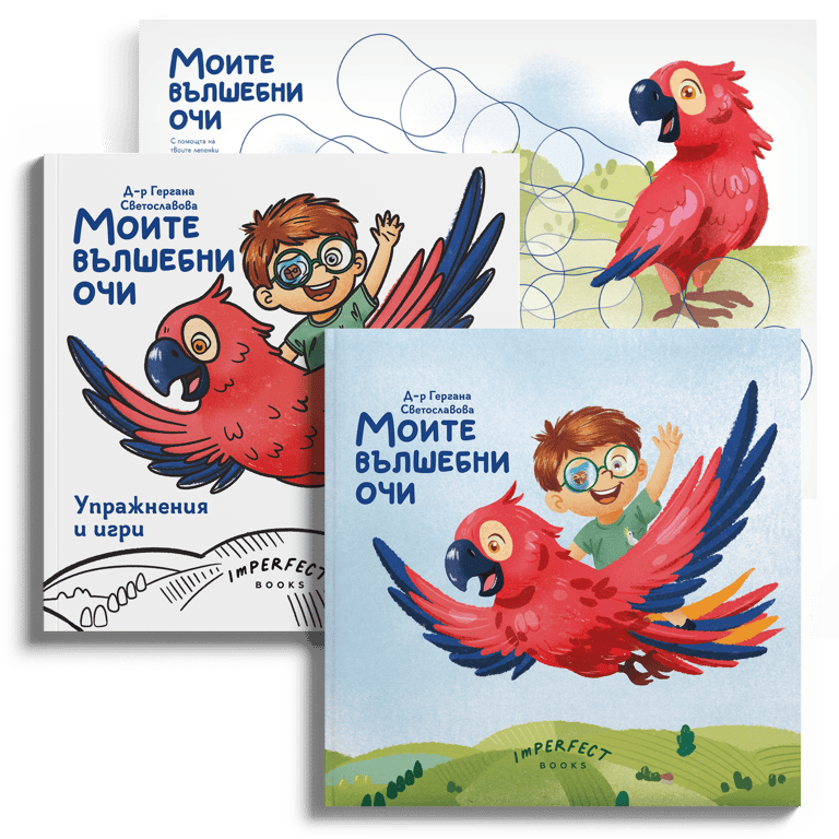 “Моите вълшебни очи“ е книга, написана от д-р Гергана Светославова, детски очен лекар и многодетна майка. Нейната цел е да помага на децата да разберат лечението на мързеливото око чрез забавни истории и цветни илюстрации. Както и на техните приятели да разберат по-добре през какъв път минават и какво е това “мързеливо” око.