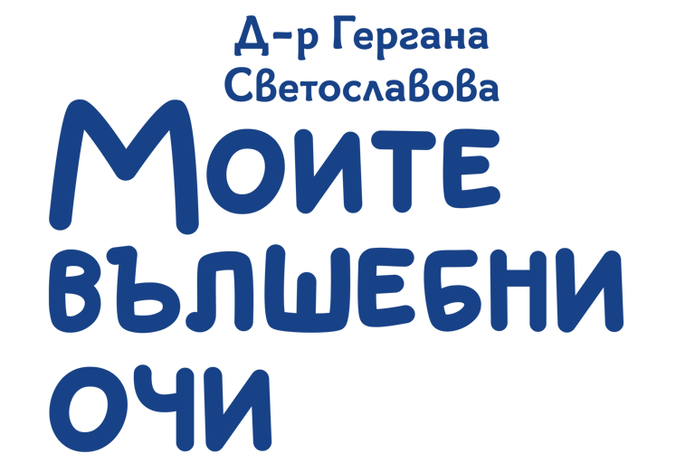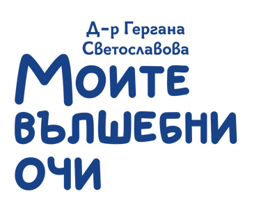 “Моите вълшебни очи“ е книга, написана от д-р Гергана Светославова, детски очен лекар и многодетна майка. Нейната цел е да помага на децата да разберат лечението на мързеливото око чрез забавни истории и цветни илюстрации. Както и на техните приятели да разберат по-добре през какъв път минават и какво е това “мързеливо” око.